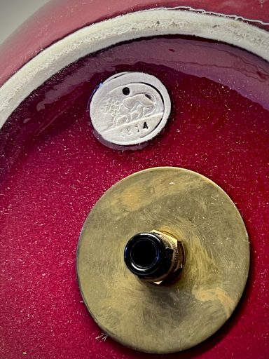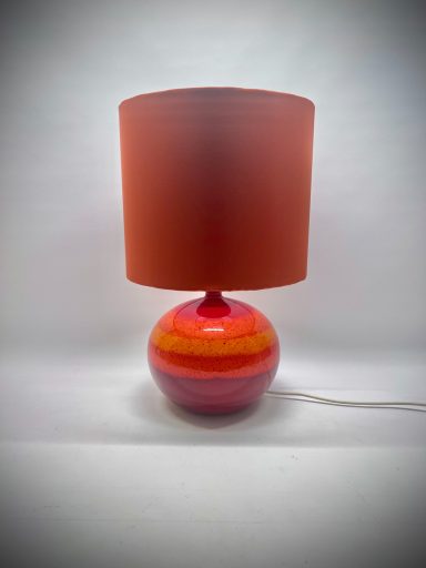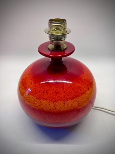 This ceramic lamp by Hutschenreuther has that effect. The red glaze is rich, almost glowing, and changes subtly depending on the light. Once switched on, it becomes softer, warmer—less object, more mood.