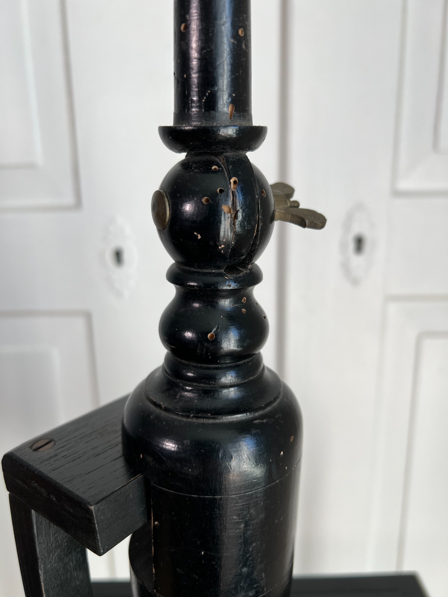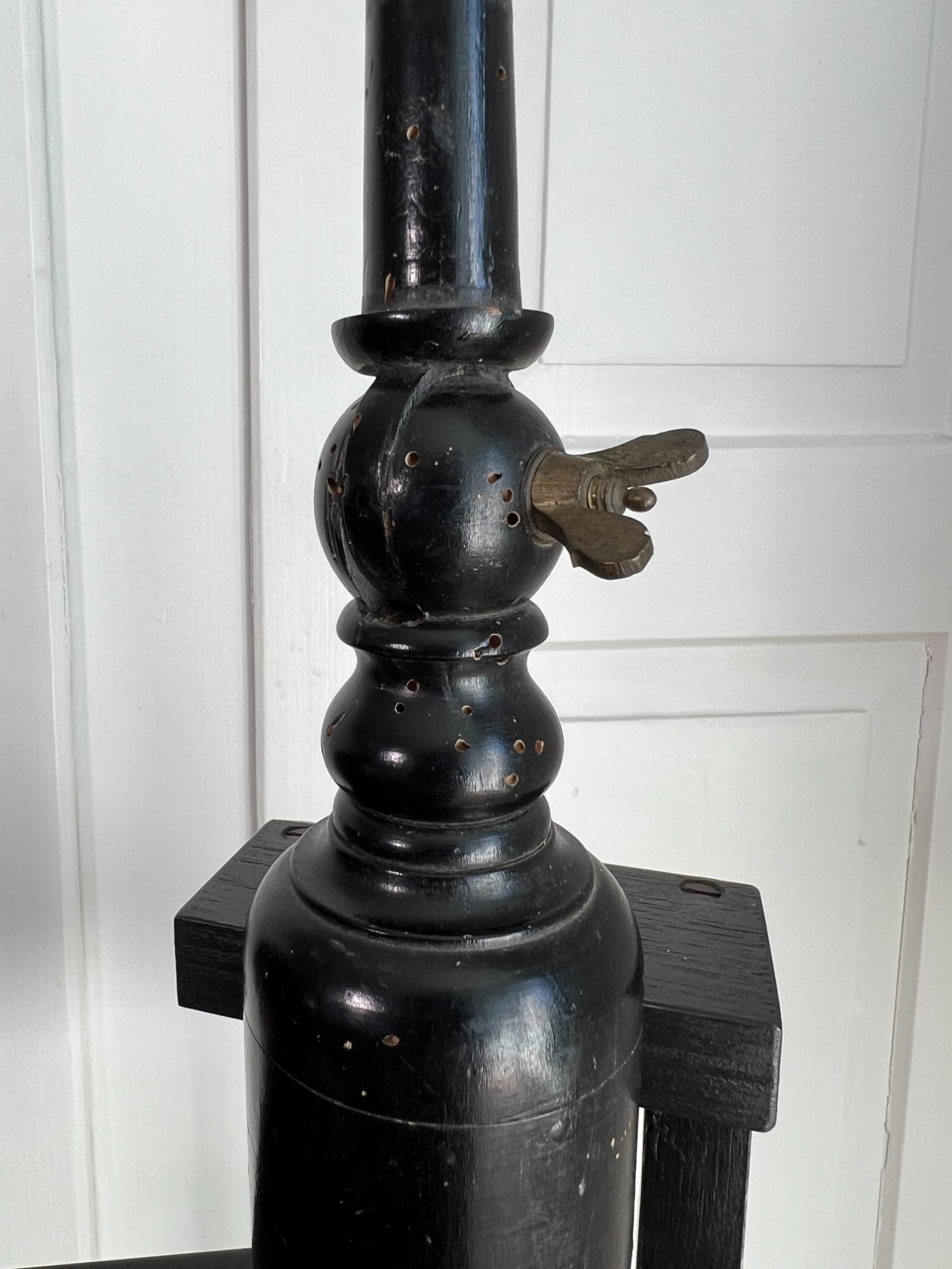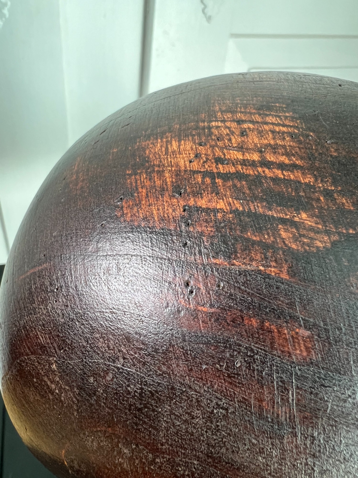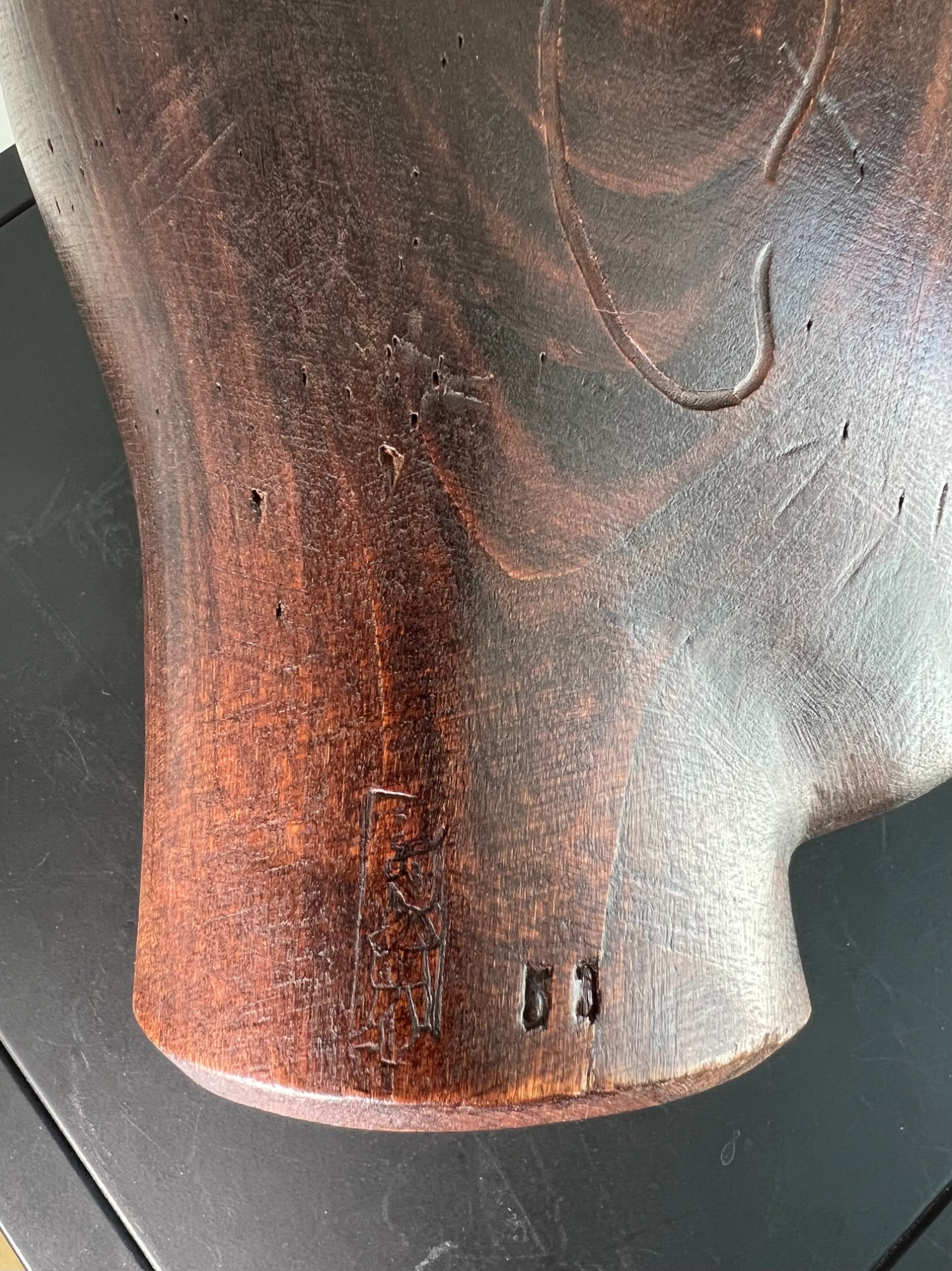 Materials: Carved wood headform; ebonised turned wood stand with round base