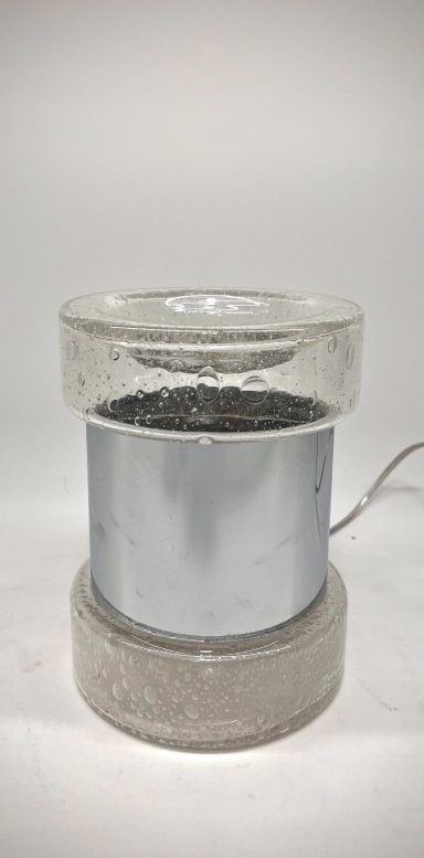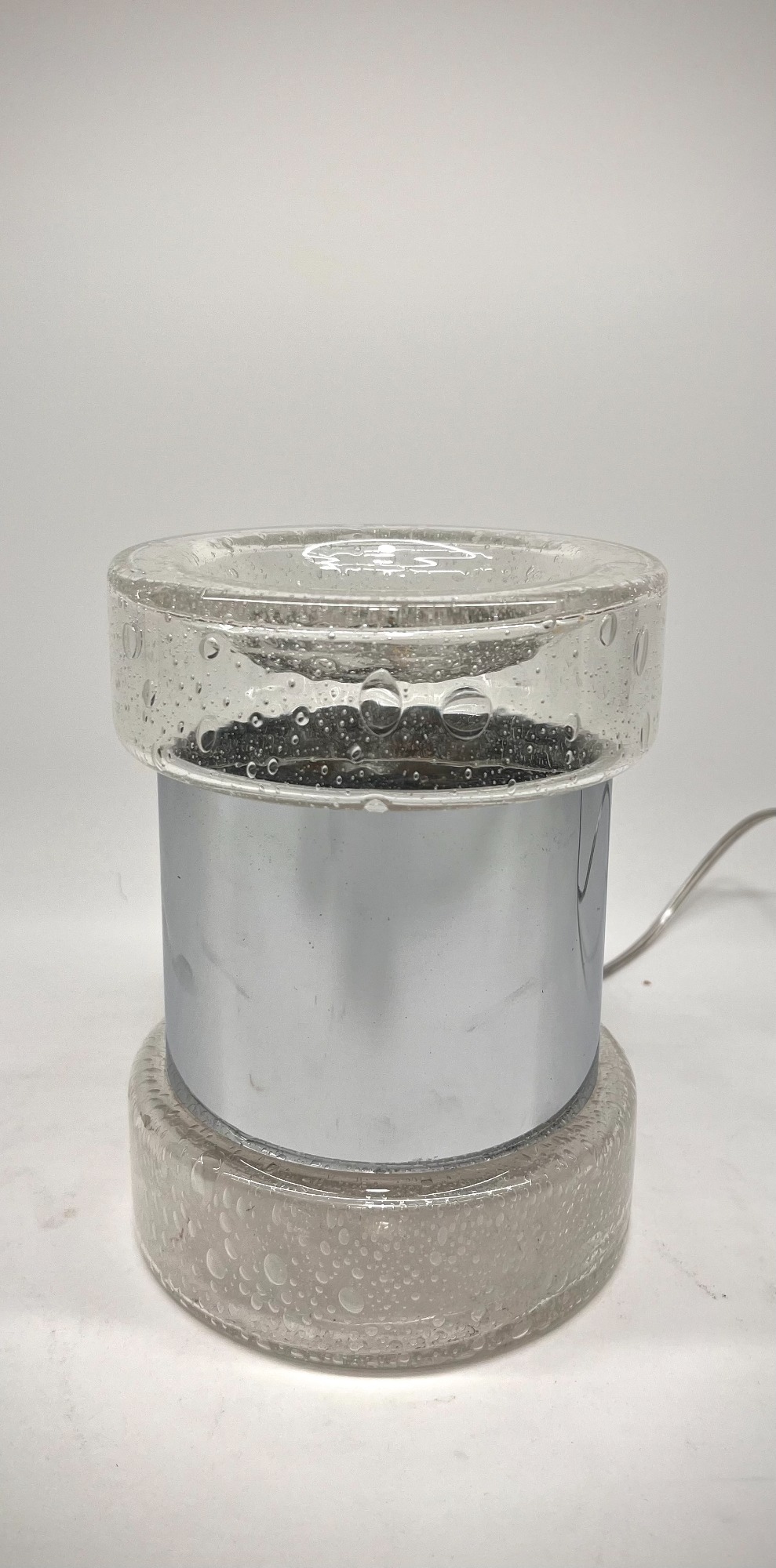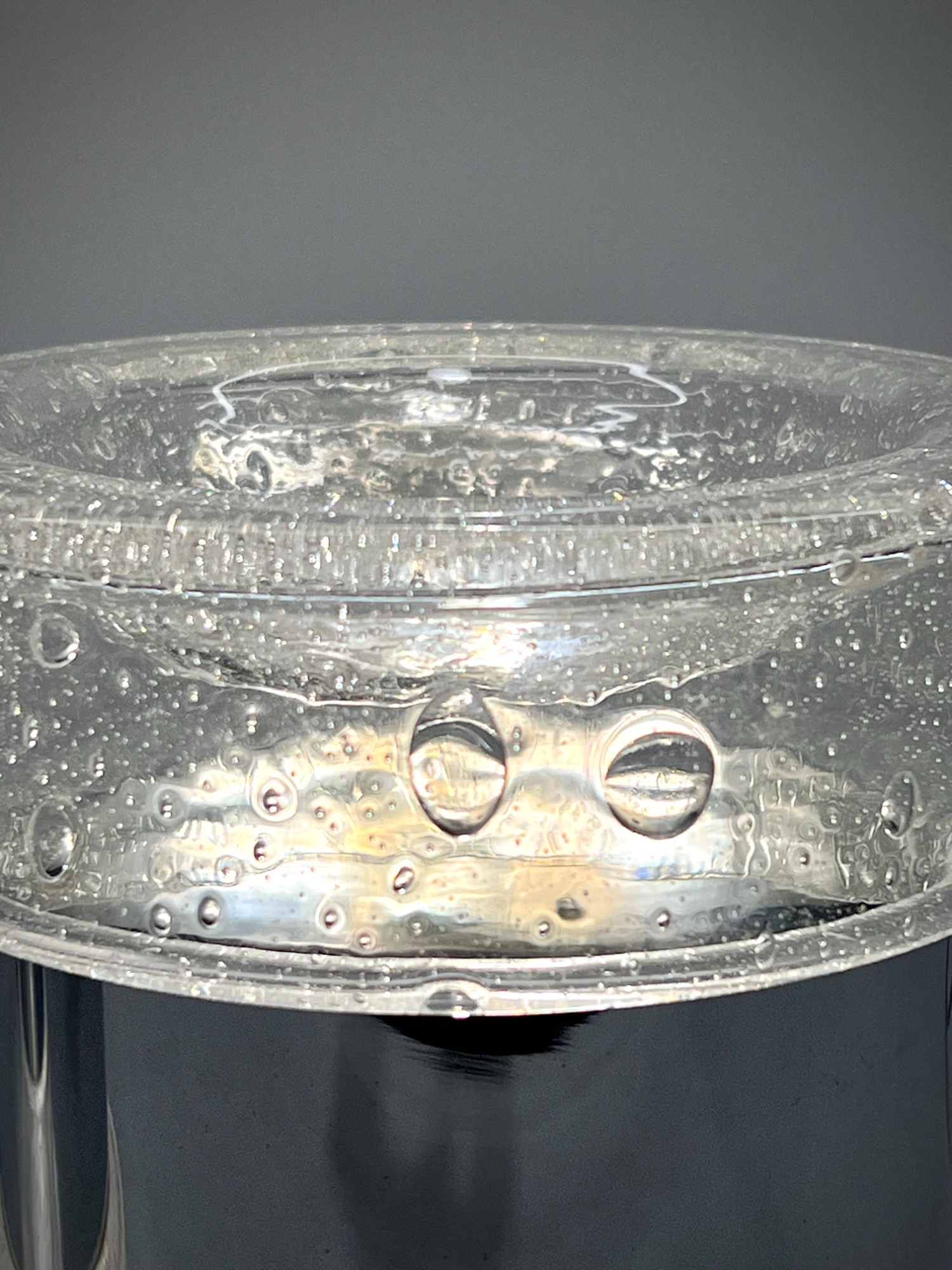 Materials: Chrome-plated metal, thick bubble glass (vetro con bollicine)