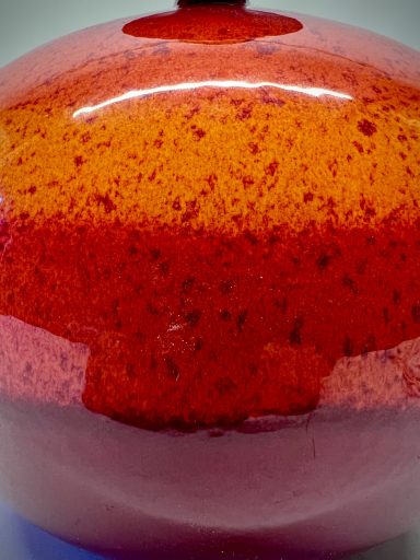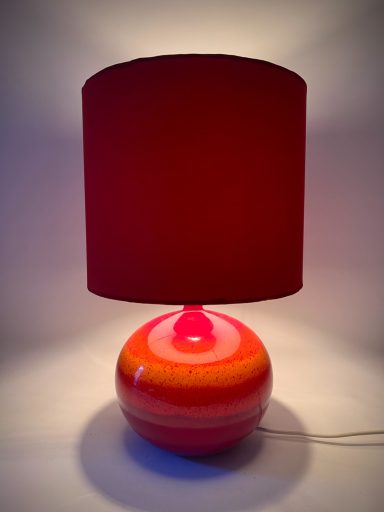 This ceramic lamp by Hutschenreuther has that effect. The red glaze is rich, almost glowing, and changes subtly depending on the light. Once switched on, it becomes softer, warmer—less object, more mood.