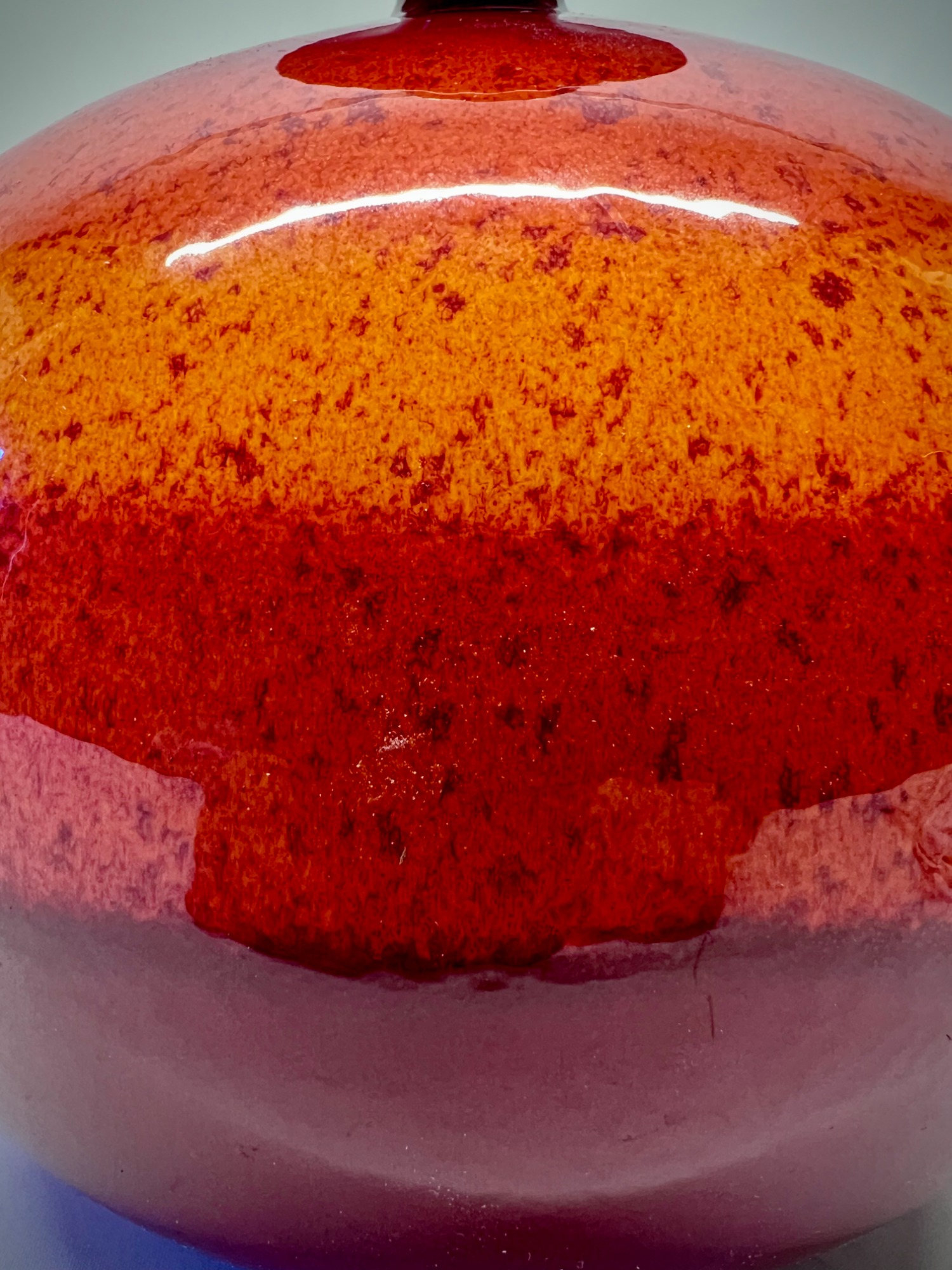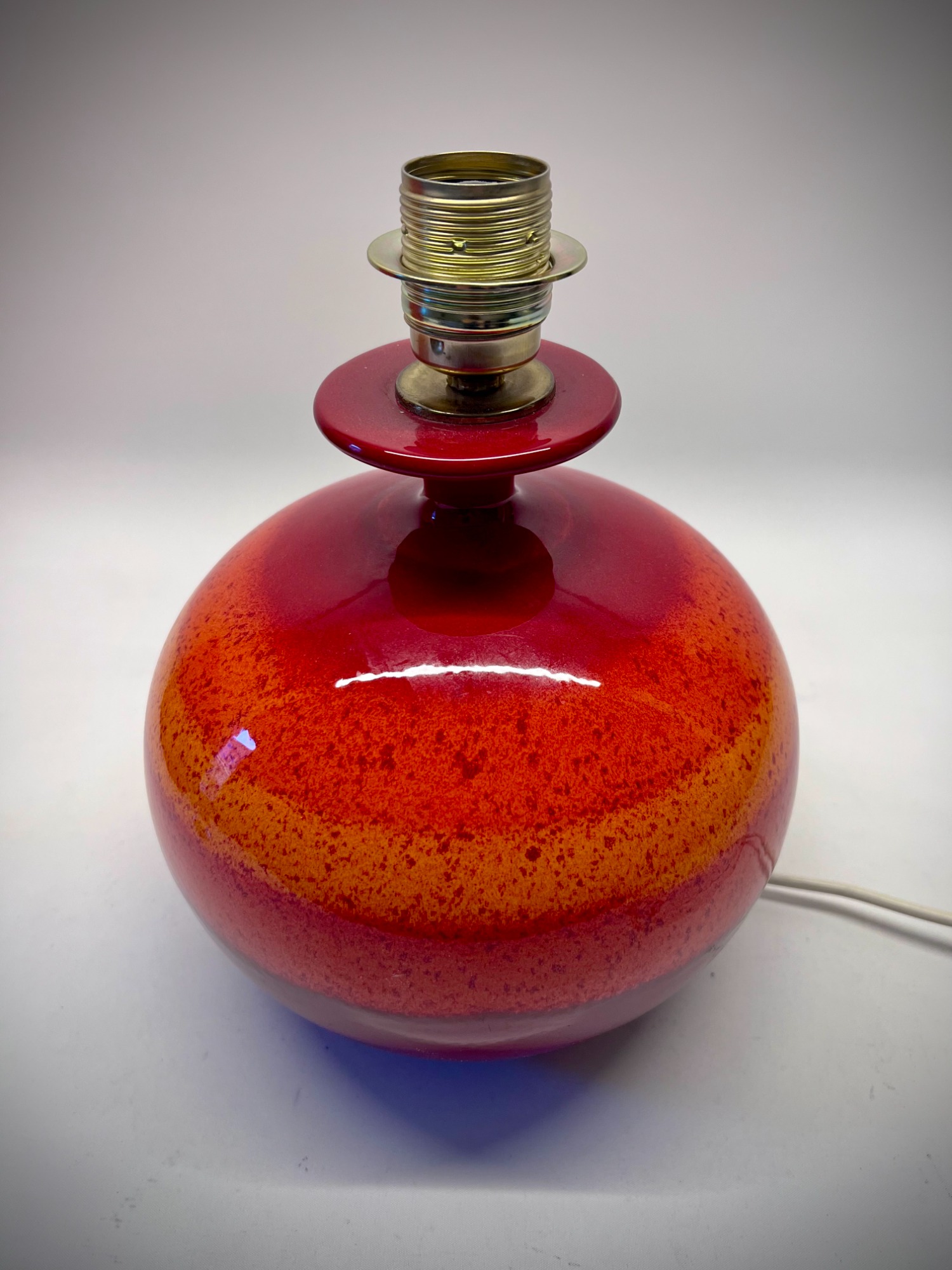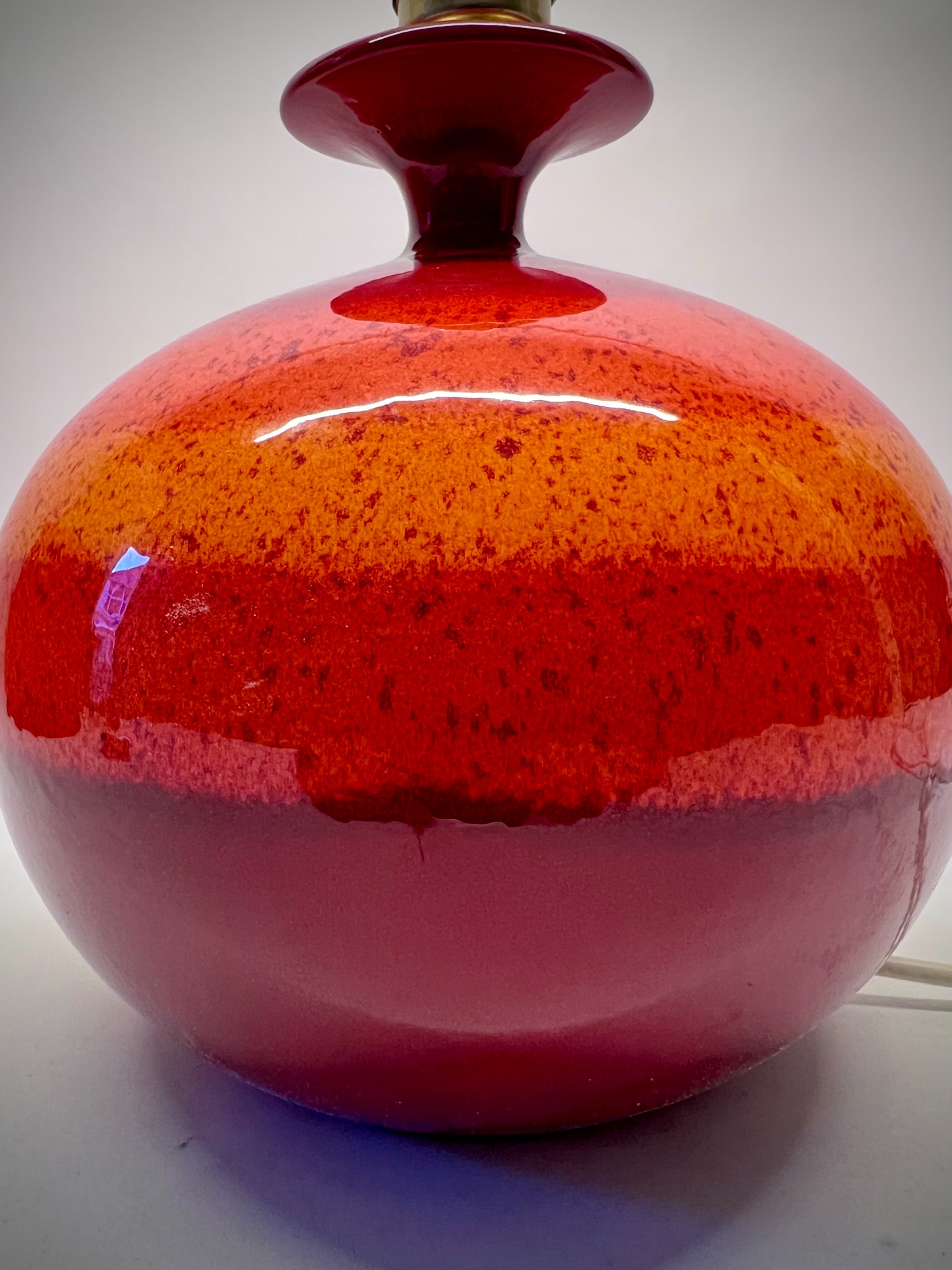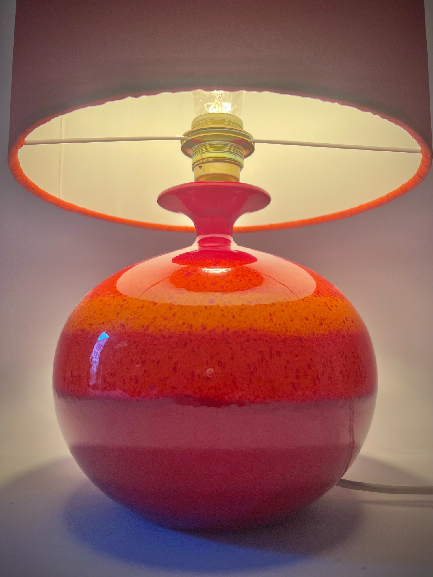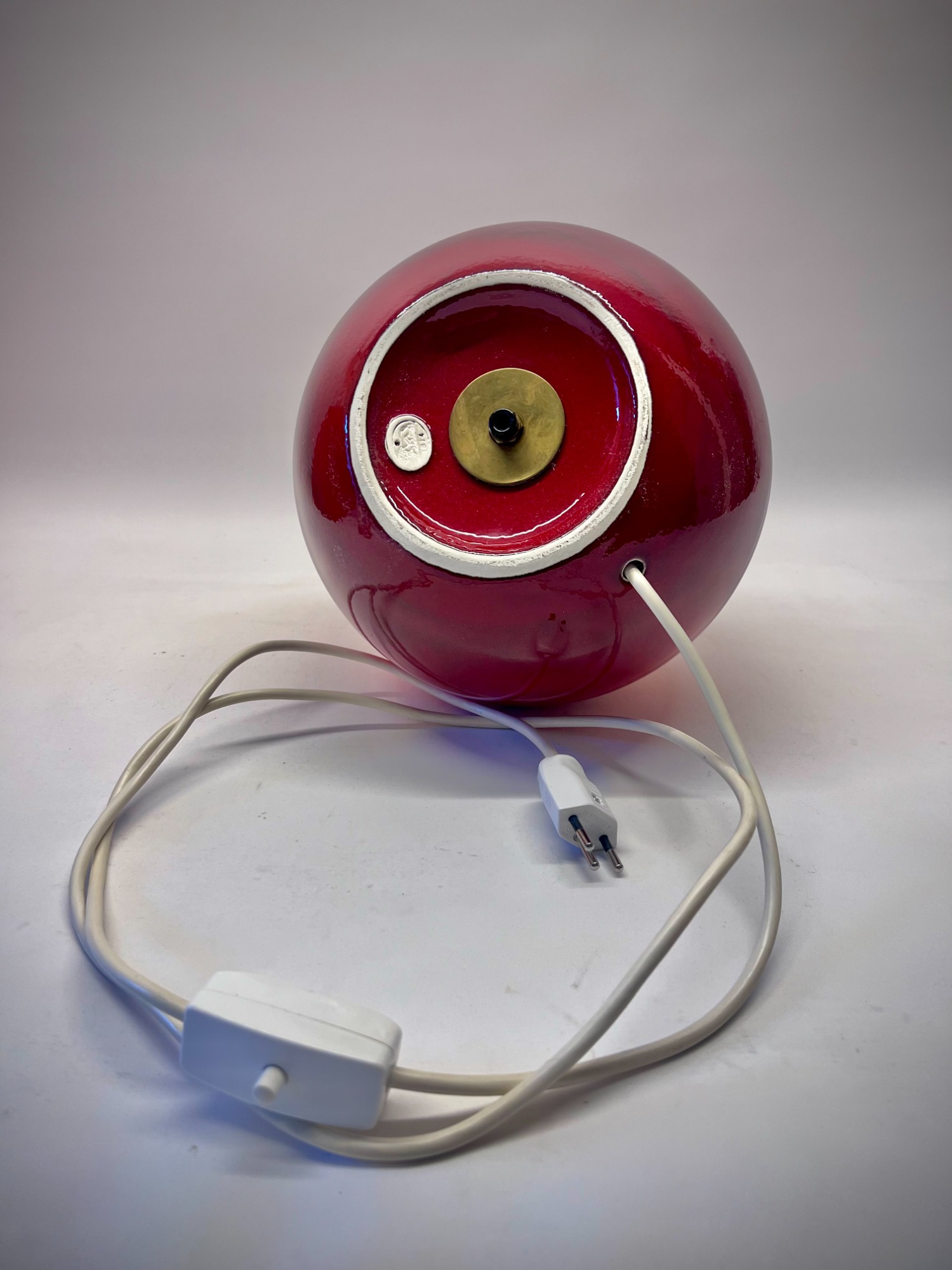 This ceramic lamp by Hutschenreuther has that effect. The red glaze is rich, almost glowing, and changes subtly depending on the light. Once switched on, it becomes softer, warmer—less object, more mood.
