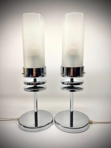 Pair of German Chrome and Frosted Glass Table Lamps – ca. 1970s–1980s